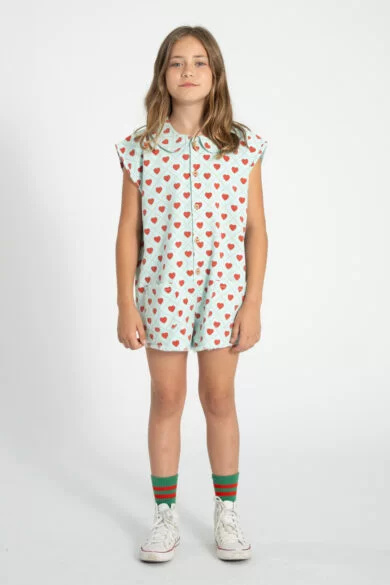 Piupiuchick – Jumpsuit – Light Blue – Red Hearts